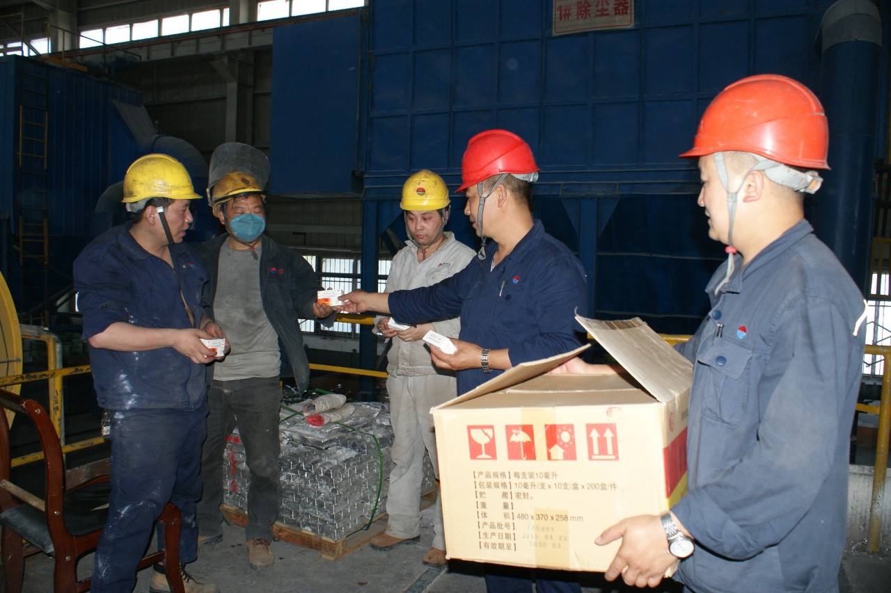 中孚炭素公司將冰糖、白糖、綠豆、藿香正氣水、涼茶等防暑降溫物品送到了一線員工手里,為他們帶來了陣陣清涼。