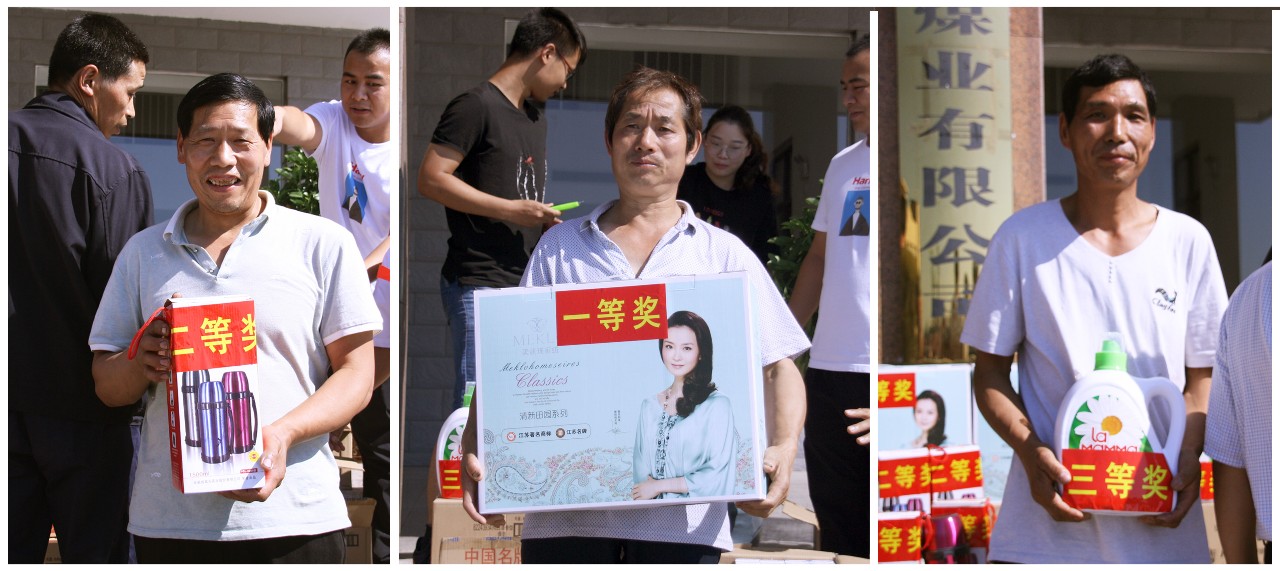 摸獎活動開始了,現(xiàn)場1300余名煤礦員工依次排隊抽獎,欣喜地領(lǐng)到了自己的獎品。
